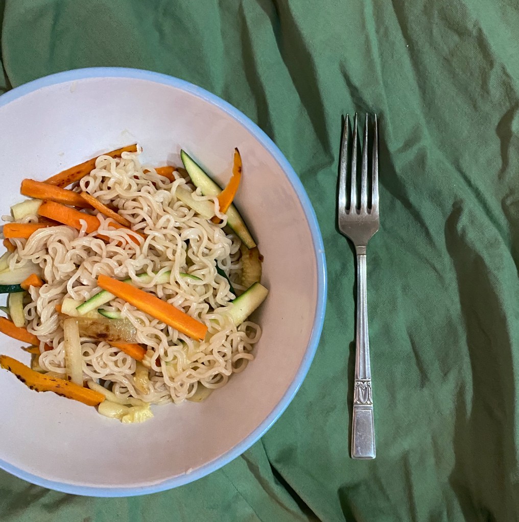 - Drain the noodles from the saucepan and add to the pan of vegetables. Serve and enjoy as a lunch or a lite dinner. If you have any leftover meat feel free to add it to your meal.