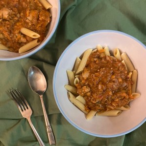 - Add sauce, grated vegetables and sausage pieces into the pan that you just cooked the sausages in. Once the sauce has heated up, pour over cooked pasta and enjoy.